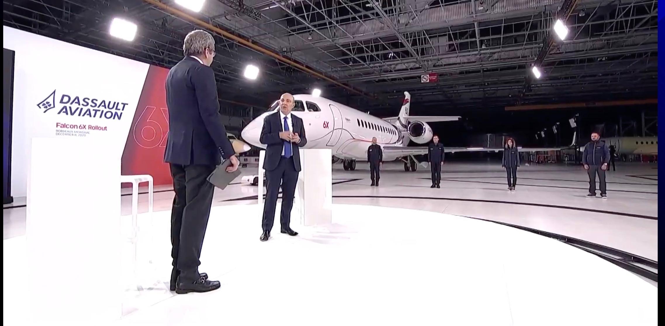 Dassault Aviation presented its new Falcon 6X long-range, large-cabin business jet Dec. 8 during a virtual rollout ceremony at the company’s Bordeaux-Merignac final assembly facility in France.