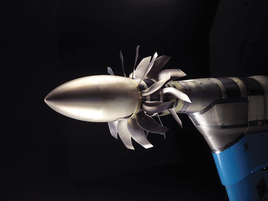 Although it has now slipped to 2016, Snecma’s ground testing of a geared open-rotor engine will put Europe on track to fly the fuel-saving powerplant on an Airbus flying testbed by 2022. The ground demo engine is being built under European research program Clean Sky’s Counter Rotating Open Rotor project. A flight demo engine is to be flown under a €185 million ($230 million) project within the follow-on Clean Sky 2. Snecma estimates an open rotor will burn 26% less fuel than a CFM Leap-1. Flights will validate efficiency and noise as well as demonstrate power gearbox, pitch change and blade technologies. Credit: Snecma