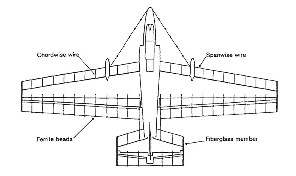 When it became clear that the U-2’s service ceiling would not prevent the Soviet Union from tracking the aircraft over its territory, Lockheed’s Skunk Works was ordered to launch a crash program to improve its ability to evade radar. The program was titled “Project Rainbow,” and the various “antiradar” configurations were known as “Dirty Birds.” Depicted here in an image from a declassified CIA document is one of the earlier configurations called “Trapeze.” It consisted of a ring of ferrite beads precisely placed along a wire suspended from fiberglass or bamboo poles attached to the aircraft’s wings. Its effect was limited to 65-85 MHz, and it did not prevent tracking of the aircraft but did hurt altitude and speed performance. Like the other Dirty Bird configurations, it was soon abandoned.