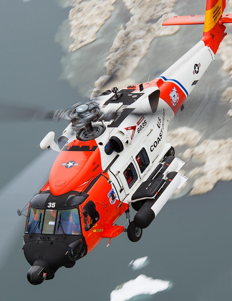 A U.S. Coast Guard MH-60T from USCG Kodiak low level over the Arctic ice off Deadhorse, Alaska.