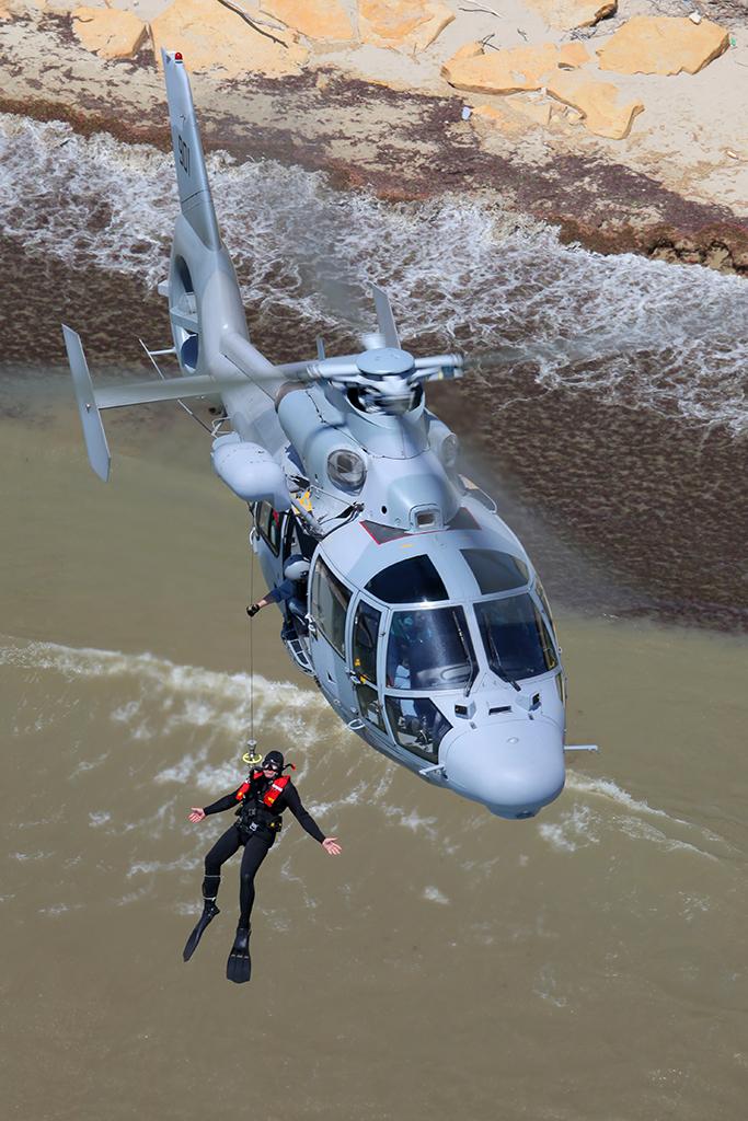 Bulgarian Navy AS-565MB Panther during SAR training flight. Black Sea coastline, Bulgaria.