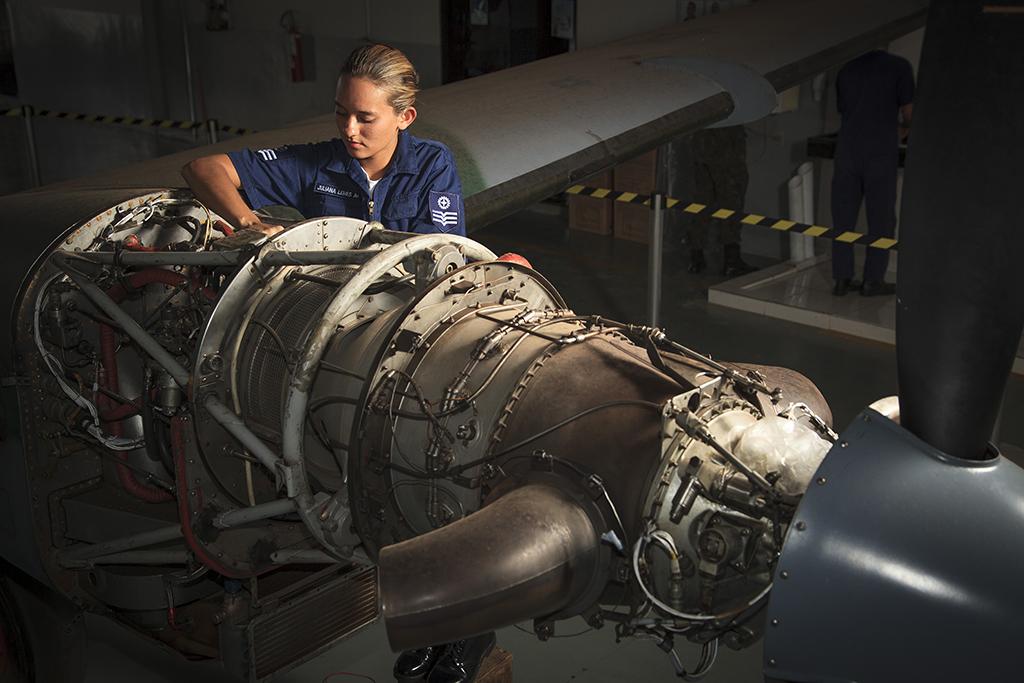 Engine maintenance of a C-95 Bandeirante, Brazilian air force, Brazil.