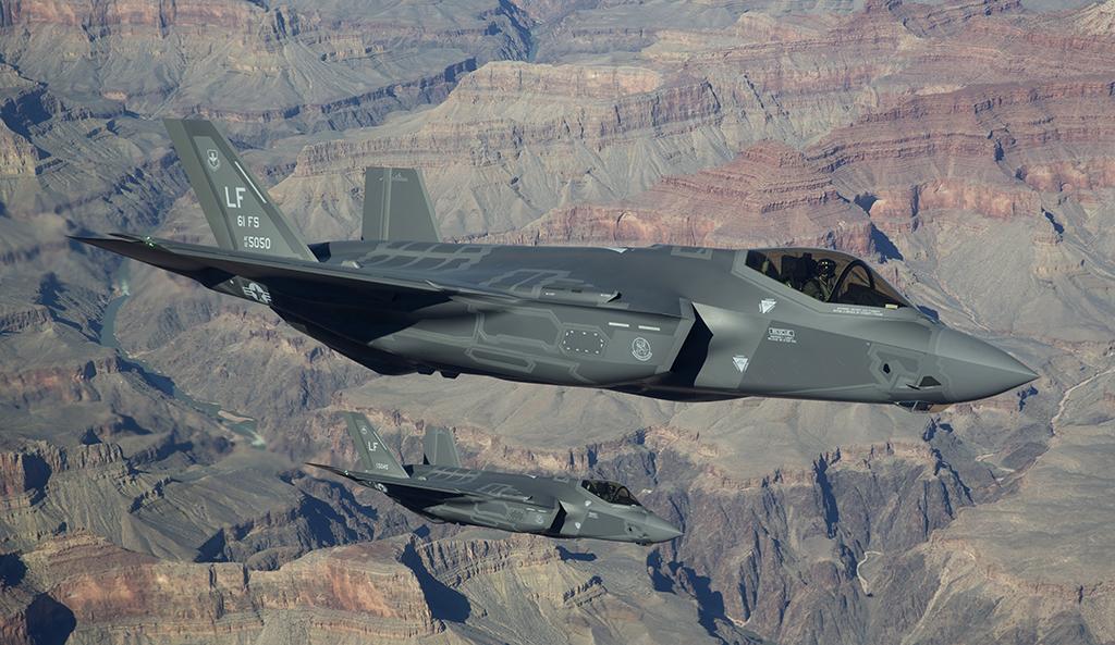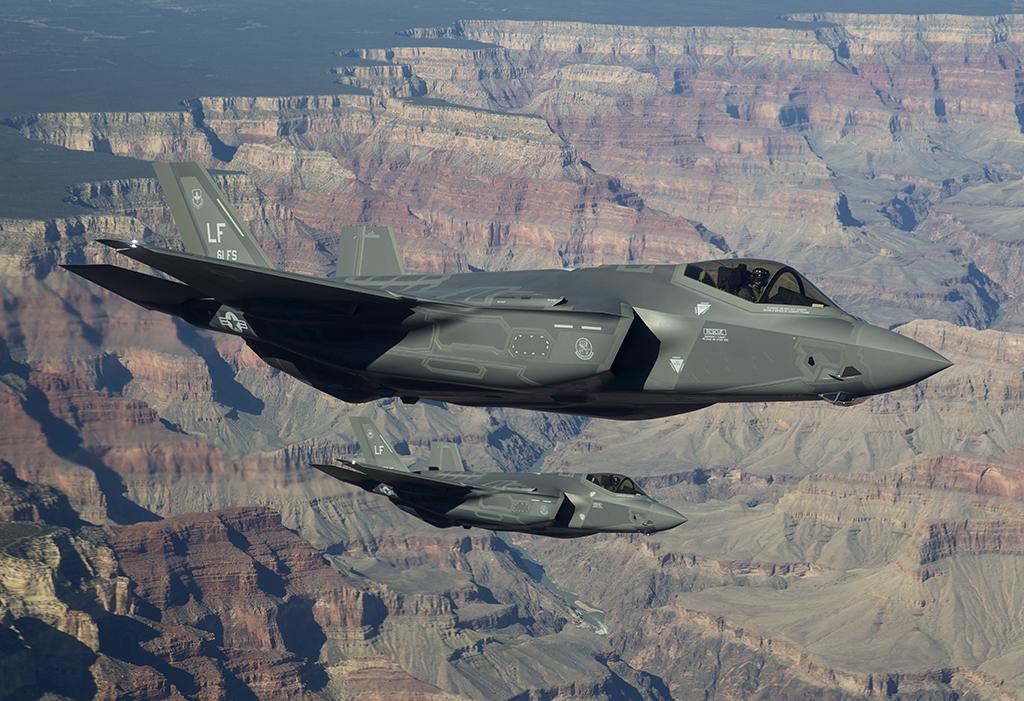 A two ship of F-35's from the 61st Fighter Sqdn. at Luke AFB, Arizona, flies over the South Rim of the Grand Canyon.
