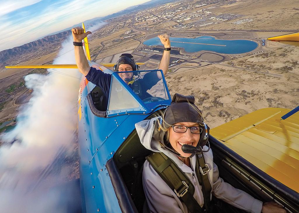 The photographer took this selfie with a GoPro while taking a friend’s wife for a flight, a Christmas present from her husband.