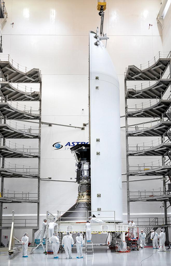 The Parker Solar Probe is encapsulated within its 62.7-ft.-tall fairing on July 16, in preparation for the move from Astrotech Space Operations in Titusville, Florida, to