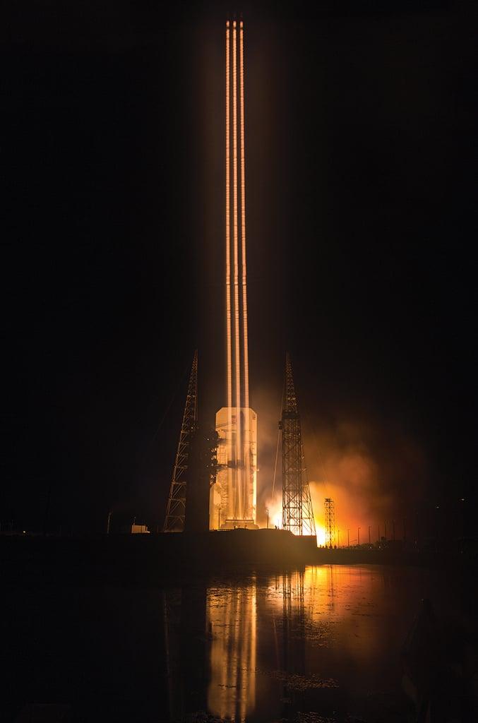 Three cores = three streaks. The United Launch Alliance Delta IV Heavy rocket carrying the Parker Solar Probe was captured with a remote camera set to a 25-sec. exposure and placed at the end of the front pond at Space Launch Complex 37.