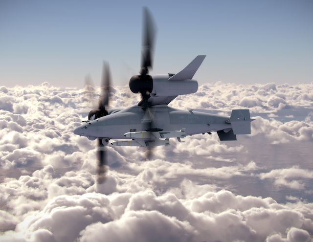 Bell has scaled down and redesigned the unmanned V-247 tiltrotor to propose as a member of family of systems that would become the U.S. Navy’s Future Vertical Lift-Maritime Strike (FVL-MS) program. The new, 28,000-lb. version of the V-247 features a folding blade and rotor system to allow the...