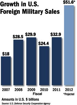 As bad as the U.S. budget picture seems, 2012 was the best year on record for the sale of U.S. weapons abroad. The administration expects to sell a whopping $51.6 billion worth of weapons overseas during fiscal 2012, soaring beyond what was a bit above a $10-billion-a-year business a decade ago. But...