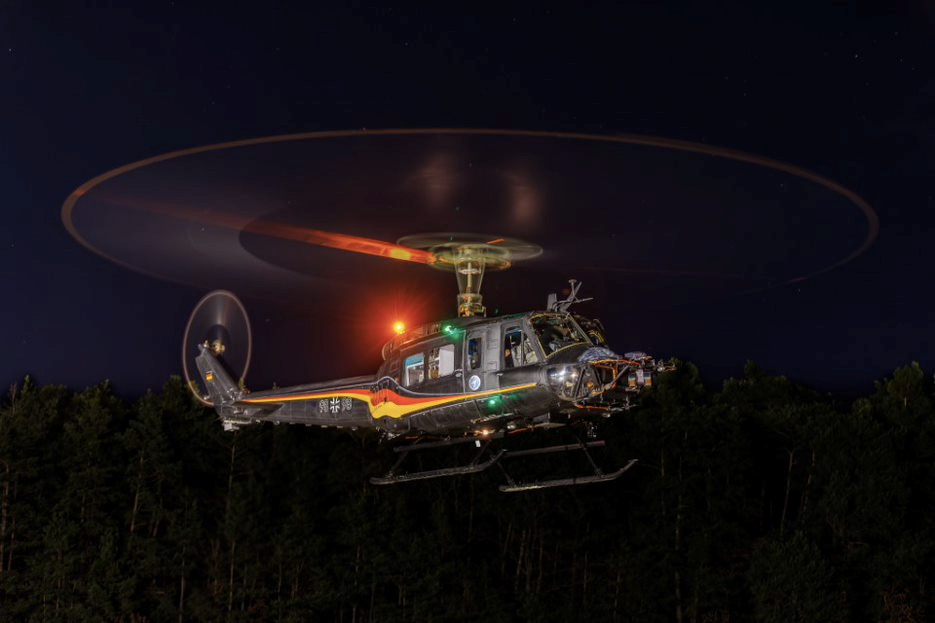 As these German Hueys near the end of their careers, this flight in Manching, Germany, presented a chance to catch the venerable helicopter during night operations.