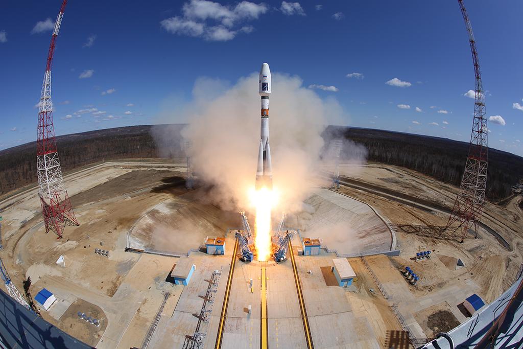 A Soyuz 2.1a launch vehicle lifts off in the first launch from Vostochny Cosmodrome in Siberia on April 28 carrying three spacecraft that it successfully deployed.