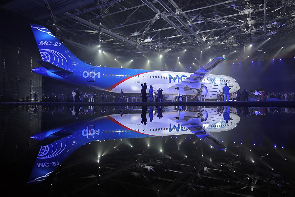 United Aircraft Corp. MS-21 jetliner is rolled out at Irkutsk, Russia on June 8.