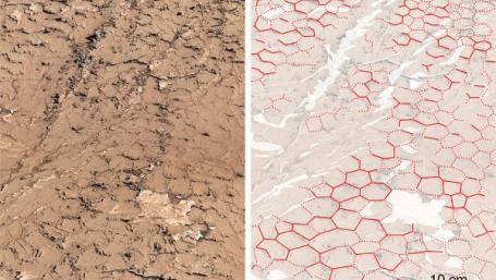The distinctive pattern of preserved mud cracks found by NASA’s Curiosity rover offers evidence which could mean the planet had potential for microbial life.