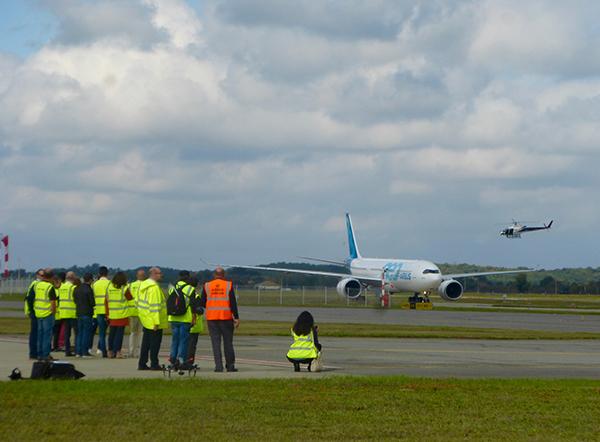 After a four-hour flight, the A330neo made a low pass over the runway in Toulouse.
