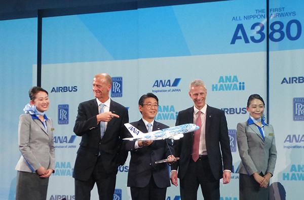 Details of an exclusive aircraft painting. ANA plans to use the A380 to double capacity between Japan and Hawaii.