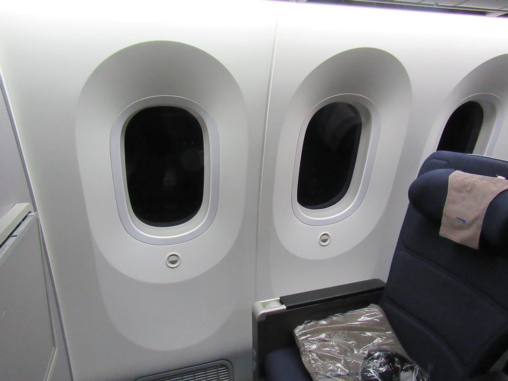 The 787 has the largest windows of any commercial aircraft, enabling customers to enjoy the view even if they don’t have a window seat.. Electronic dimmer blinds are featured on every window with five graduated settings. Even on the darkest setting, customers are still able to see outside.