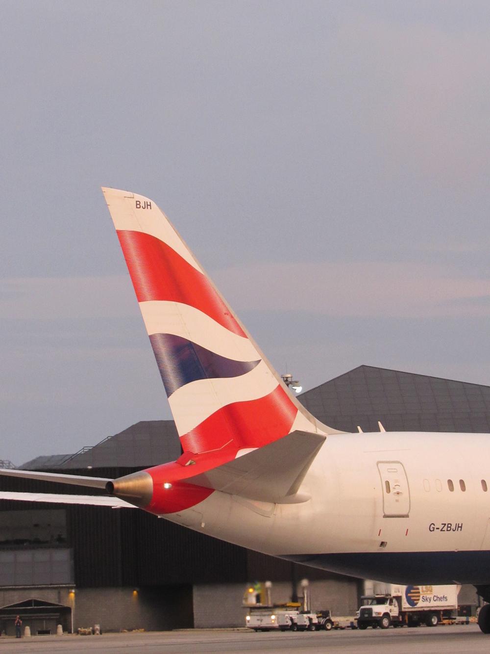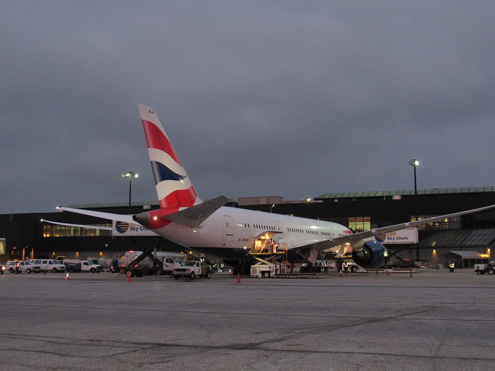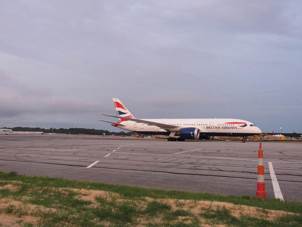 The British Airways 787-8 taxis on the runway after landing at BWI.