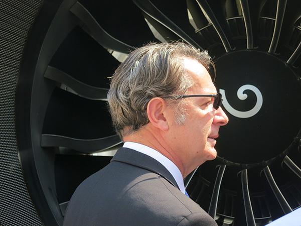 CFM International CEO Gaël Méheust in front of the A320neo's LEAP 1A engine.