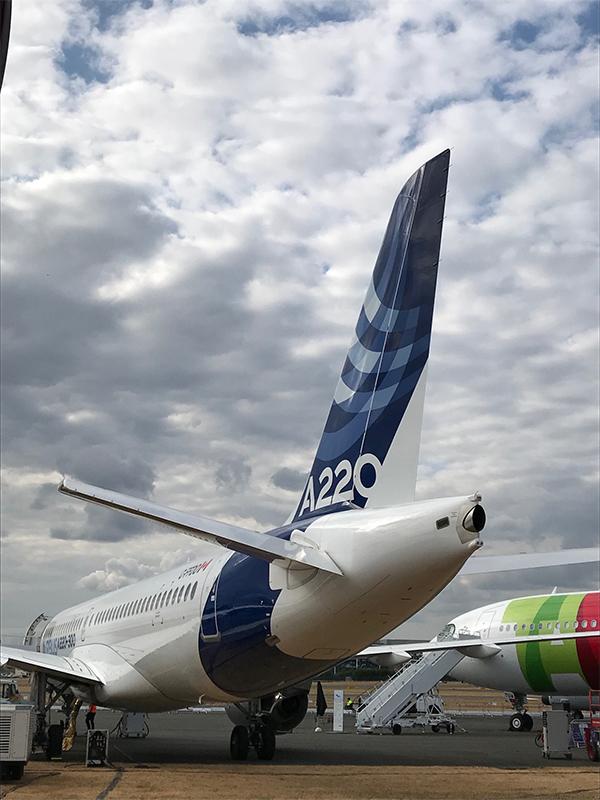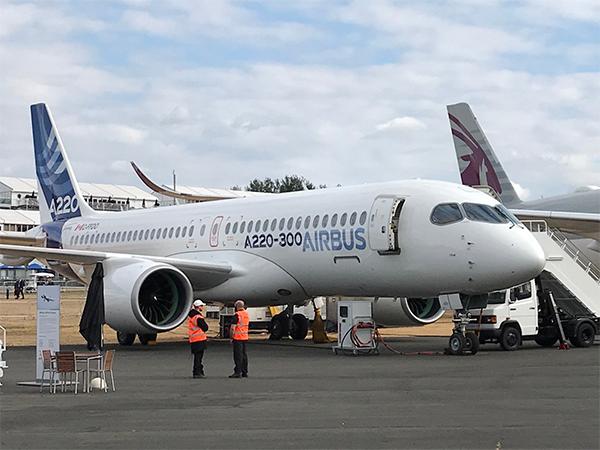 Airbus A220-300. Old wine in new bottles. The former Bombardier CSeries CS300 is on show at the show in its new identity as the Airbus A220-300, with the European manufacturer hoping that major orders and commitments already announced will help make it a vintage year.