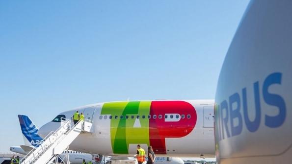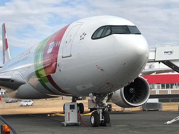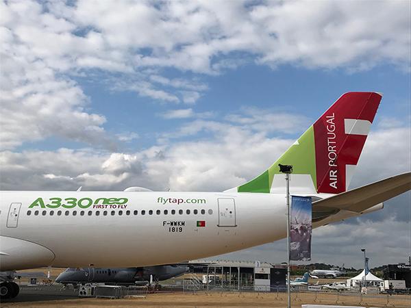 Airbus is also showing the first A330neo, in the colors of launch customer TAP Air Portugal.