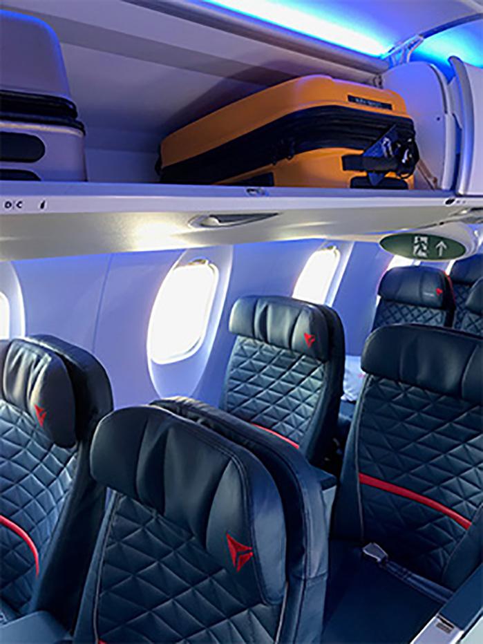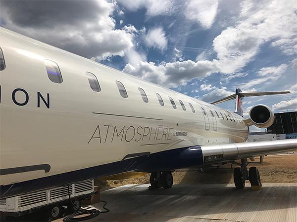 Bombardier unveiled the Atmosphère cabin on a Delta Connection CRJ900 regional jet.