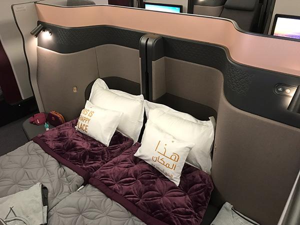 The seats convert into lie-flat beds with new bed linen and pillows, plus pajamas for passengers. The first aircraft on which the new cabin has been installed is a Boeing 777-300ER, appropriately registered A7-BED.