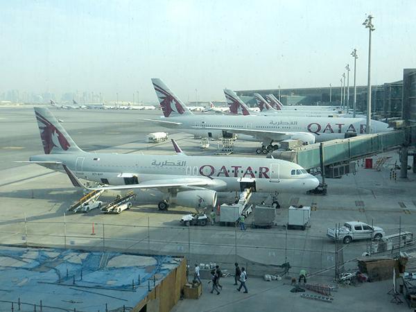 Emirates Airline, Etihad Airways, Saudia, Gulf Air, flydubai and Air Arabia were among the airlines that ceased flights to Qatar, effective June 5, after Middle East states surrounding Qatar severed diplomatic links with the country and closed neighboring airspace. Doha-based Qatar Airways suspended flights to Saudi Arabia. Photo: Qatar Airways aircraft at Hamad International Airport