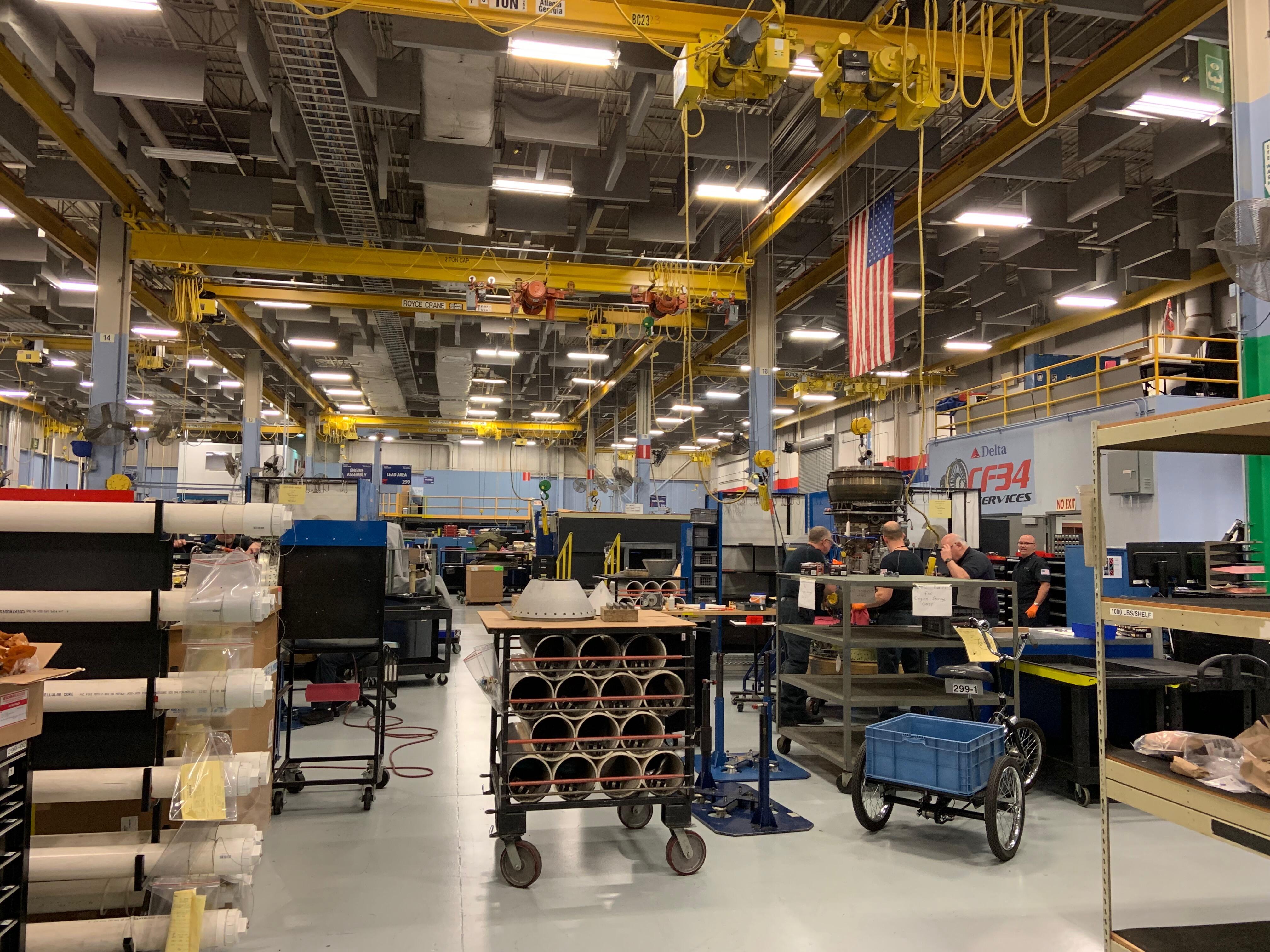 As it transitions to servicing new engines, such as the Pratt & Whitney geared turbofan (GTF) and the new Rolls-Royce engines, Delta TechOps is investing in new tooling and machinery. Here is the PW1000 GTF engine shop.
