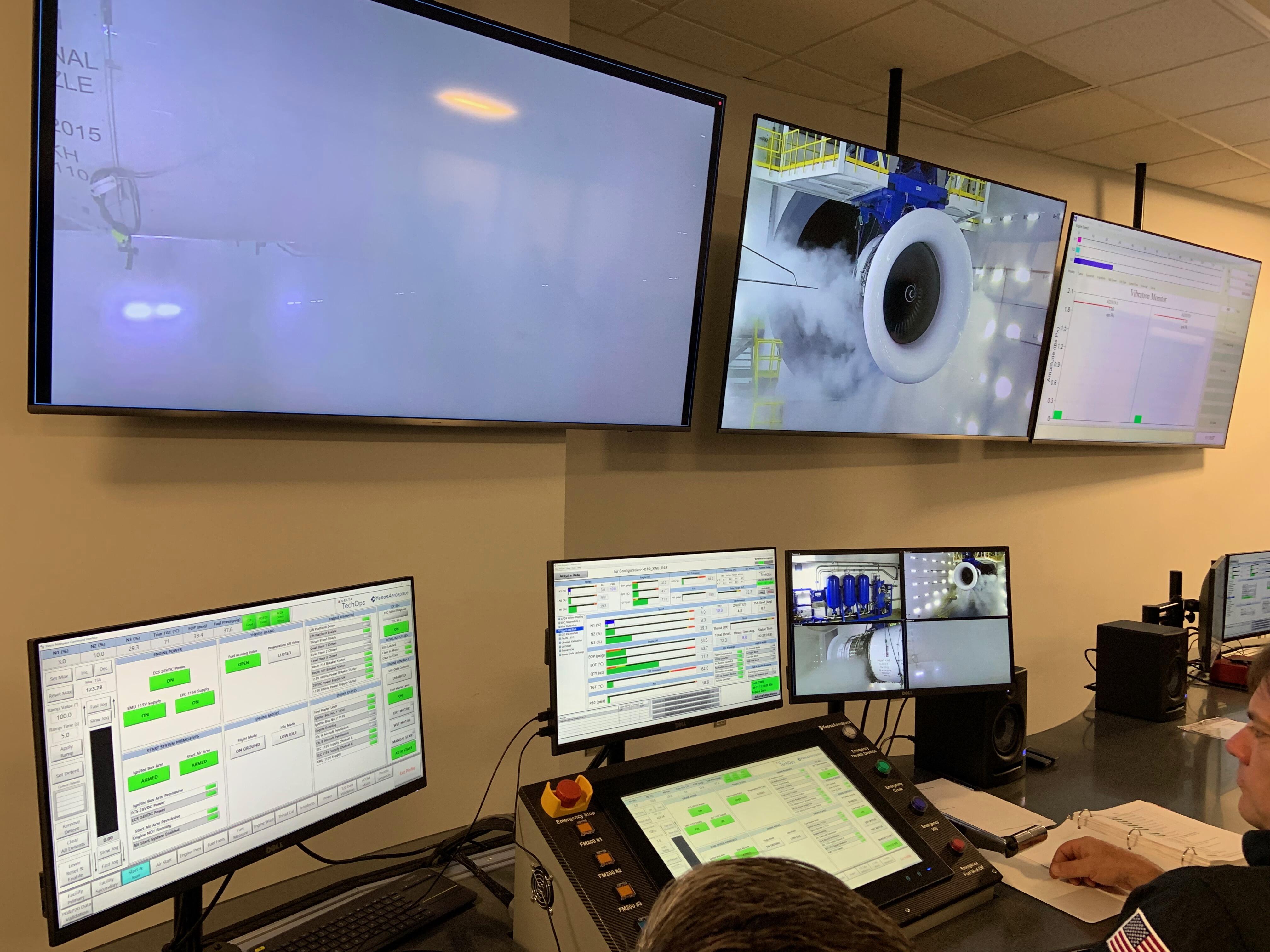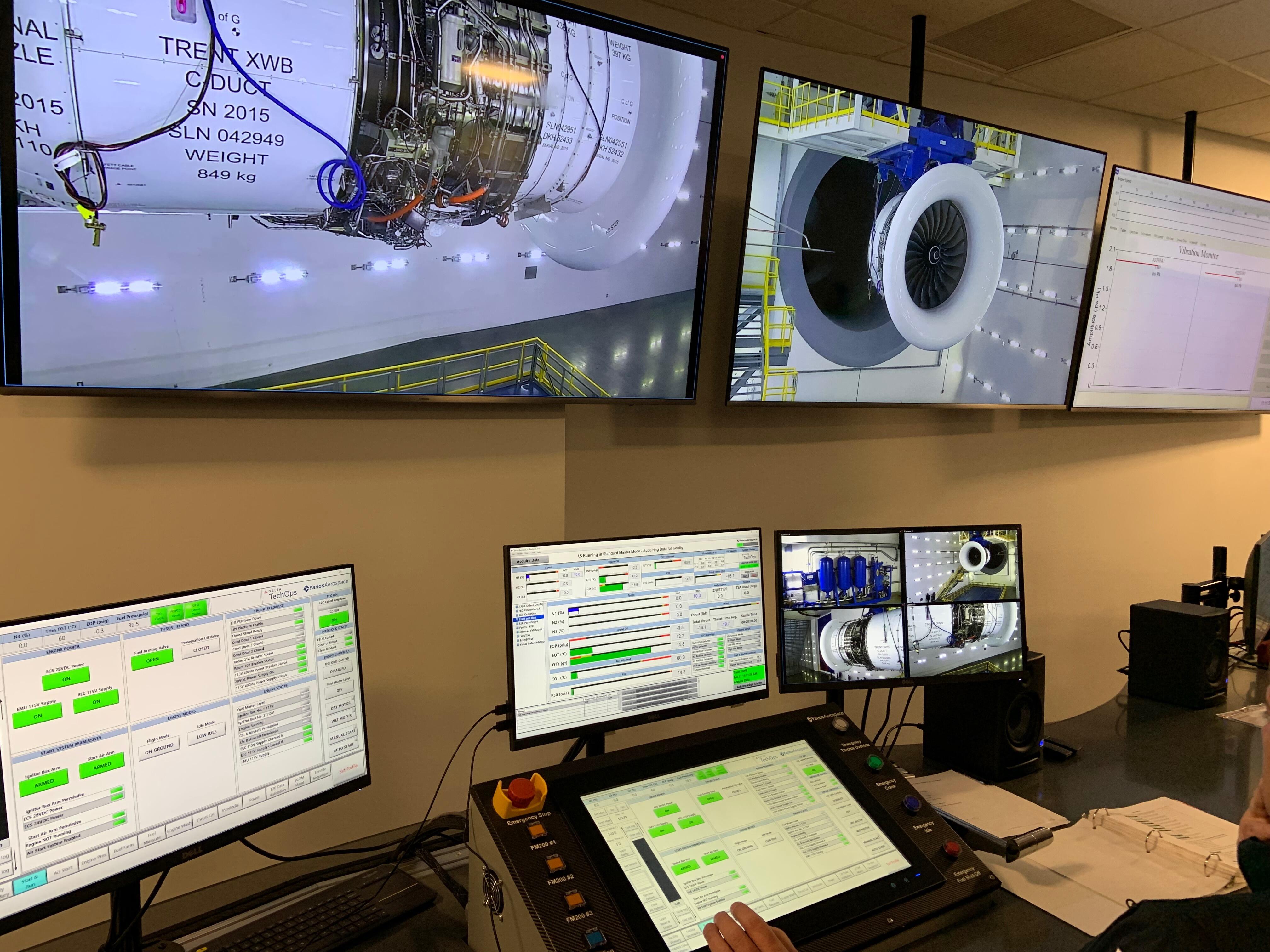 Inside the control room, Delta staff prepares to run the Trent XWB.