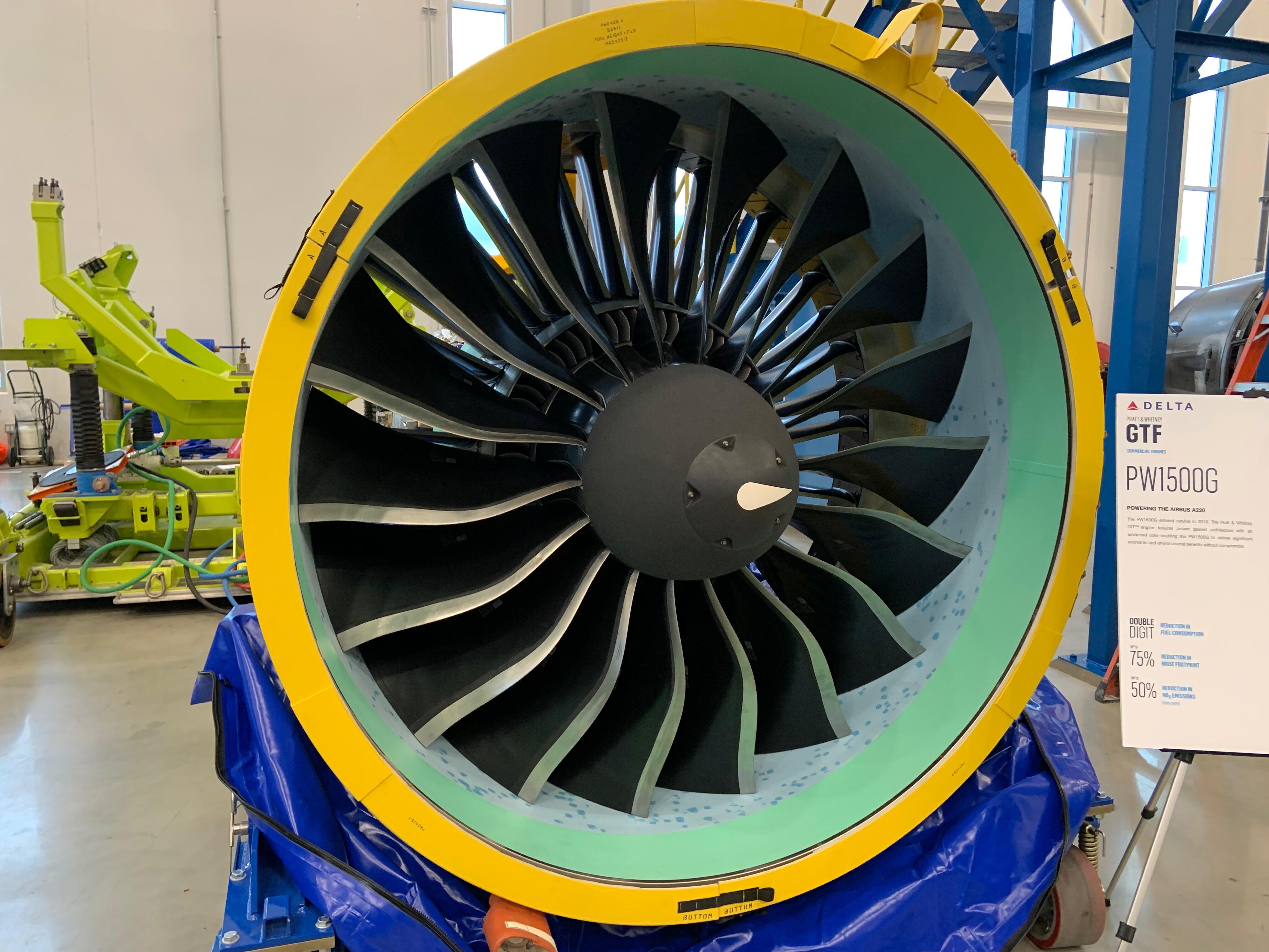 Here is a Pratt & Whitney PW1500G, which powers Delta Air Lines’ Airbus A220s…