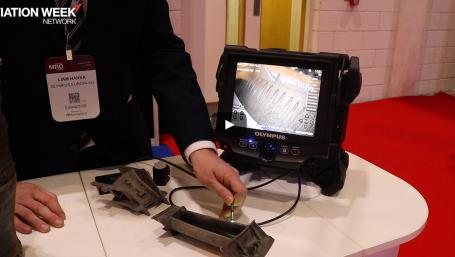 From the exhibition floor at MRO Europe 2017, Liam Hanna from Olympus Europa KG demonstrates the company's IPLEX NX videoscope and how it can be used for aircraft inspection.