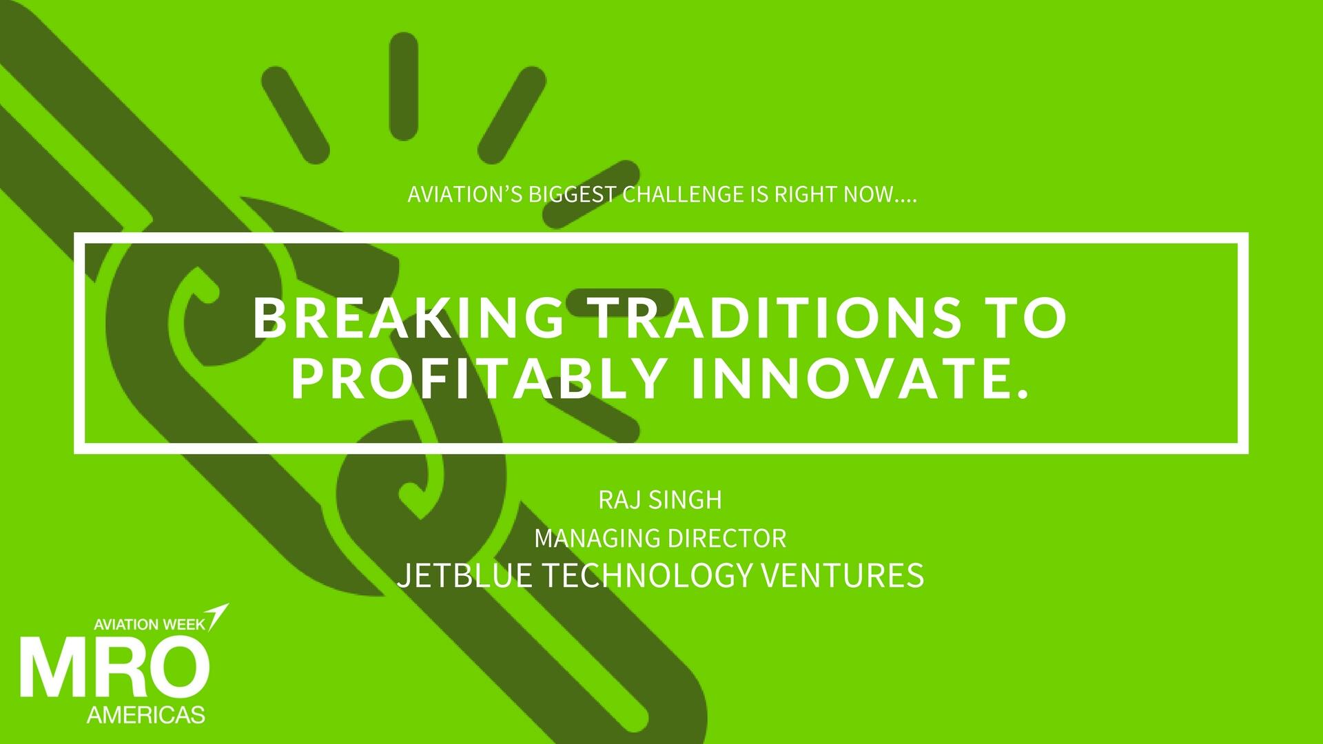 Raj Singh, managing director for JetBlue Technology Ventures and speaker at "New Technology - Impact on MRO and the Shop Floor", Apr. 26 at #MROAM