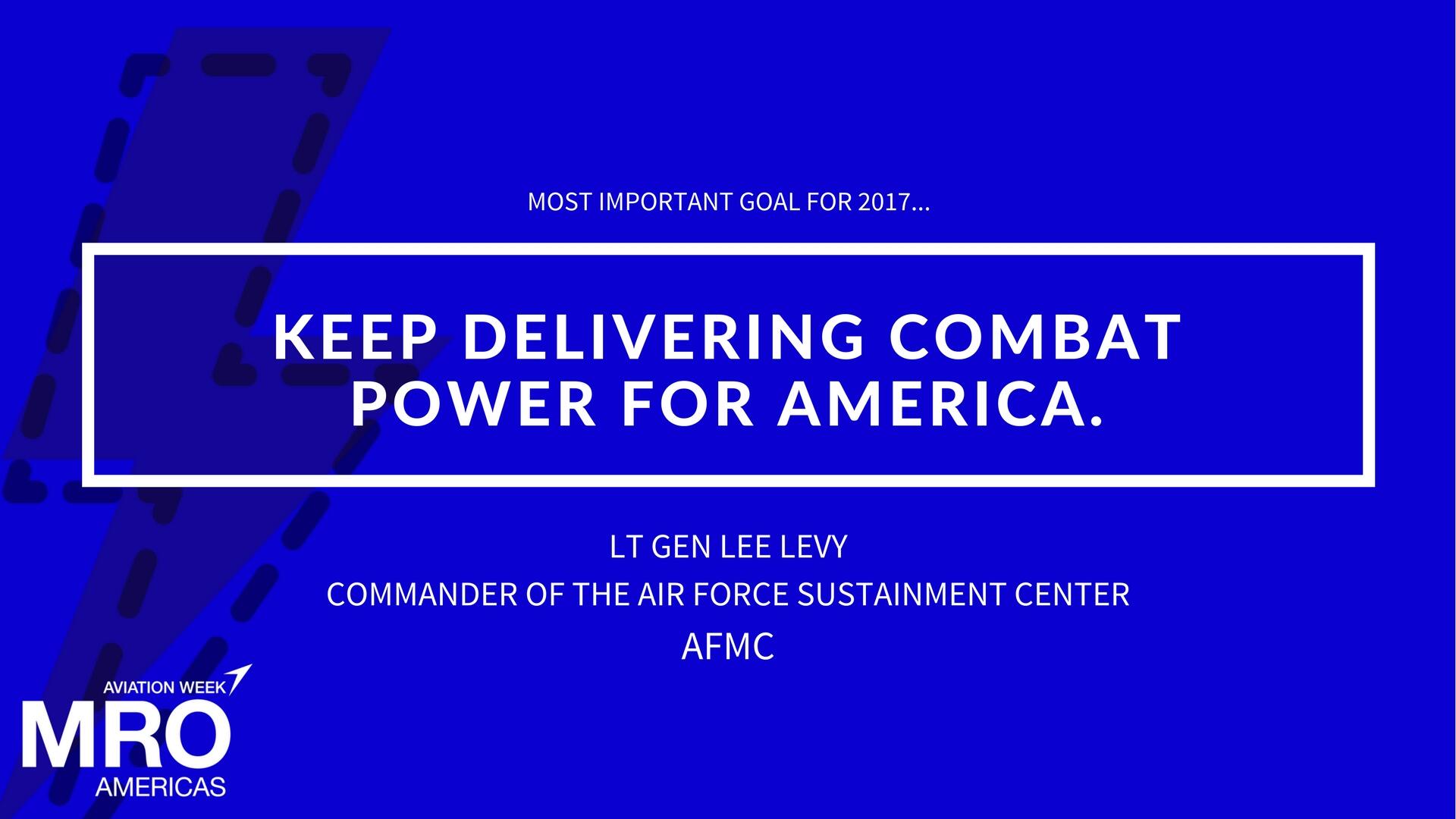 Lt Gen Lee Levy, commander of the Air Force Sustainment Center for the AFMC, and keynote speaker for the Military Keynote, Apr. 26 at #MROAM