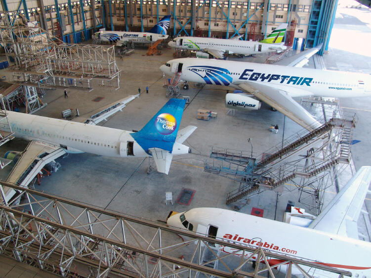 Egyptair Maintenance & Engineering is an MRO company in the Middle East and Africa offering MRO services to commercial aircraft—engines and components. Being an ECAA, FAA and EASA Part 145 approved maintenance organization, it provides line maintenance in many domestic and outstations, base maintenance up to D-Check at Cairo International Airport as well engine overhaul, mechanical components, NDT, avionics and engineering services. Egyptair Maintenance & Engineering capabilities cover a wide range of aircraft types including the Airbus A320 family, A330, A340, A300-600, A300-B4 and Boeing 737-300/-400/-500/-600/-700/-800/-900, 777 and Embraer E-170/-190.