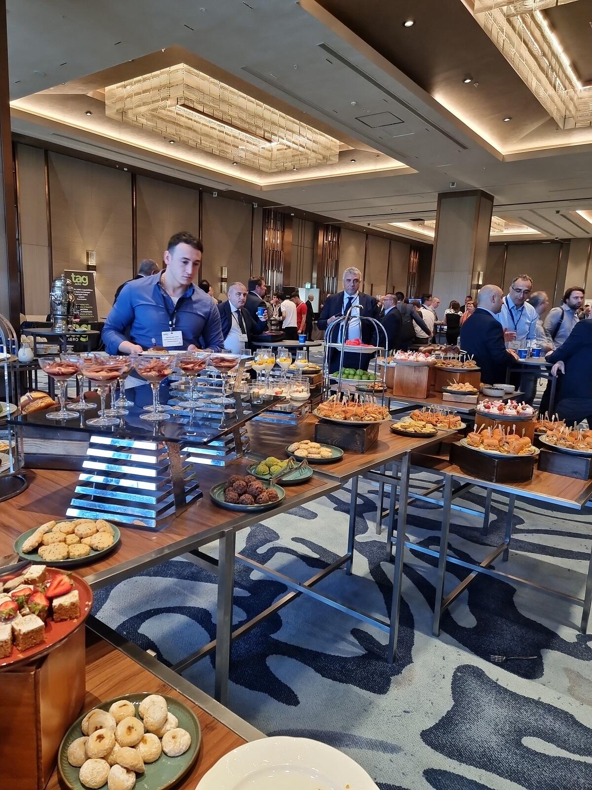 As the exhibitors chatted with industry peers, the hotel staff kept everyone fed and watered with an impressive display of savory and sweet treats positioned in the center of the room.