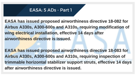 A listing of airworthiness directive and bulletins from EASA and FAA.