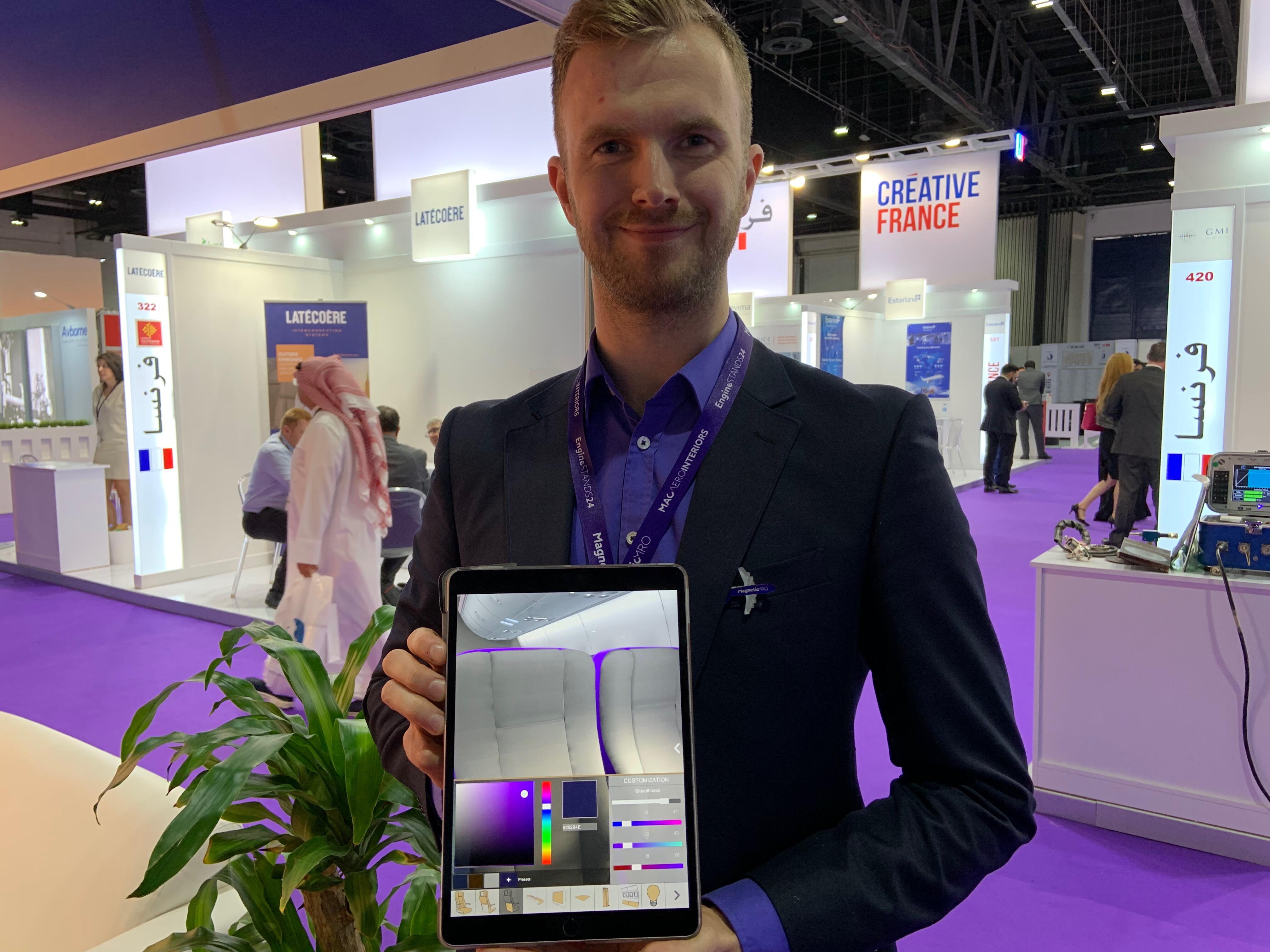 Partel-Peeter Kruuv, Magnetic MRO's interior project manager, demonstrates the company's Cabin Designer app.