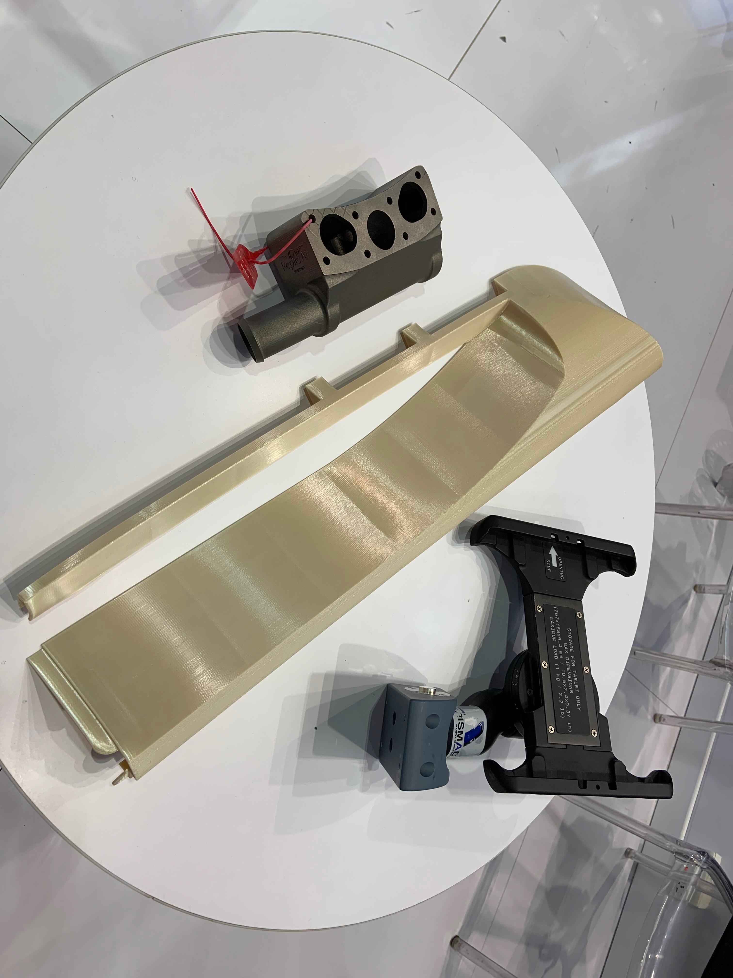 WeAre Group used additive manufacturing to make these three parts: a titanium oil collector, a pelmet made of Ultem9085 and and A380 tablet holder.