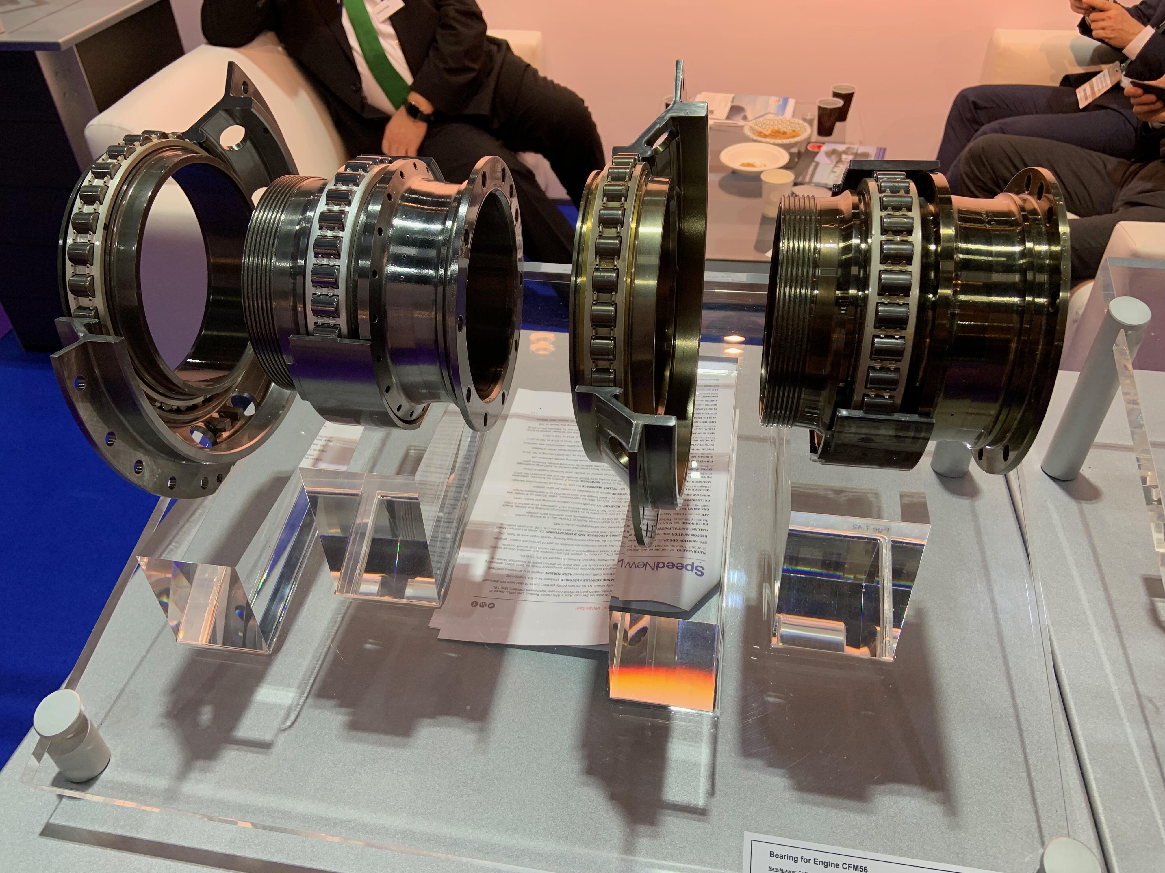 Here are two sets of Fag Aerospace CFM56 bearings: the ones on the left were repaired by Schaeffler Technologies, which says typical turnaround times are 18 days maximum.