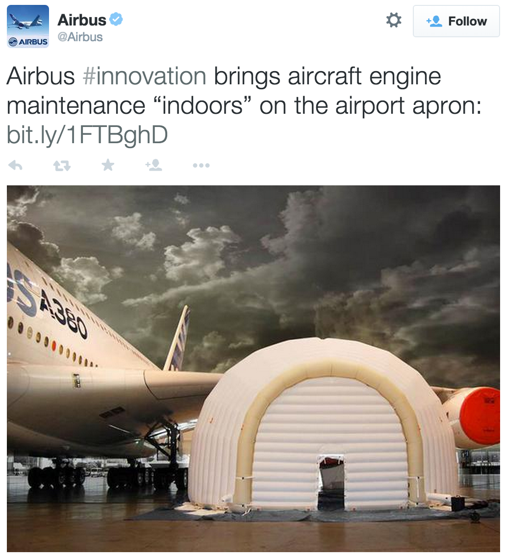 Airbus introduces an inflatable tent that enables engine maintenance in protected conditions. Full article here.