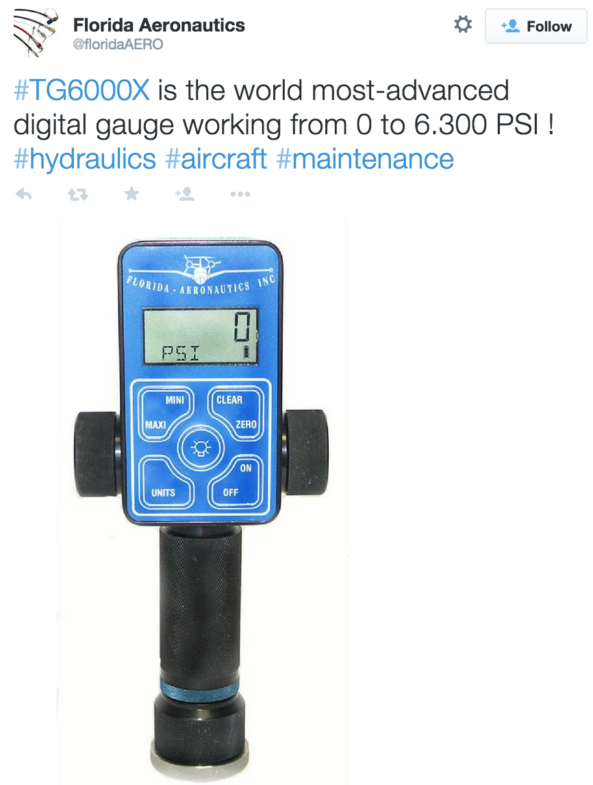 Florida Aeronautics posts a photo of its digital gauge for aircraft maintenance.