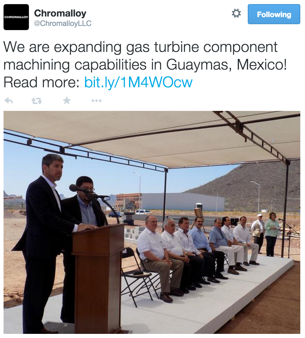Chromalloy announced it is expanding its gas turbine component machining capabilities in Guaymas, Mexico.