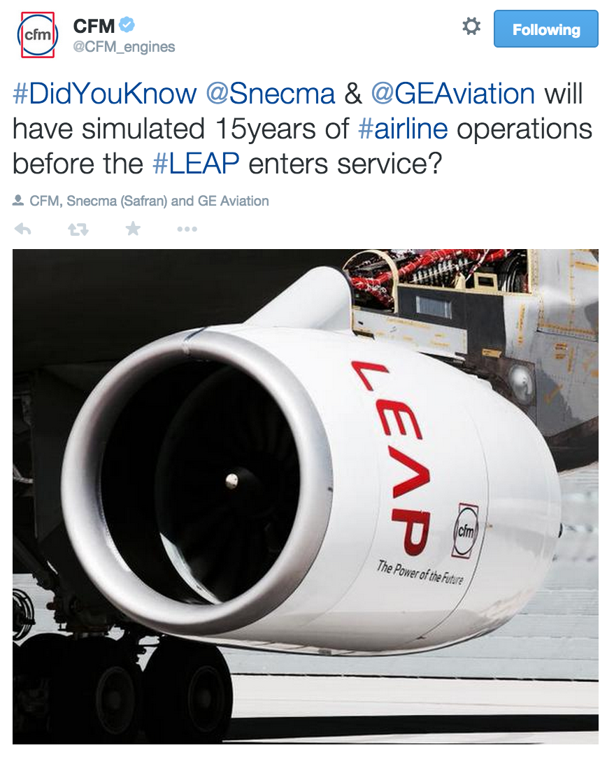 CFM tweets a facts about GE Aviation and LEAP engines.