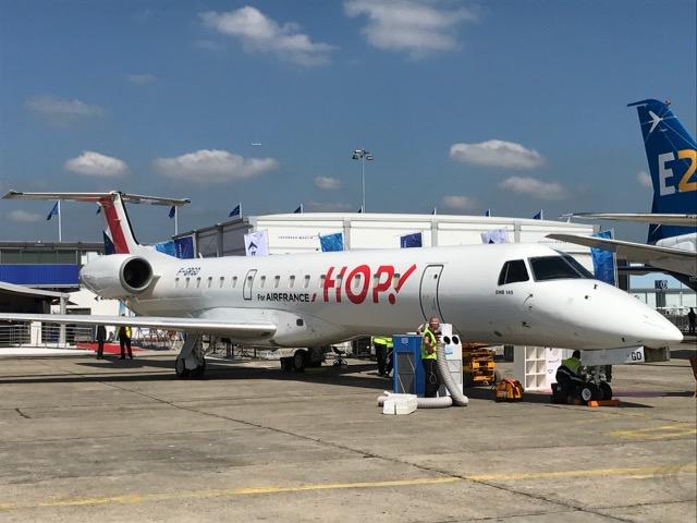 Embraer marked its 20-year association with French regional carrier HOP! (and its predecessors) with an EMB-145 in the static park.