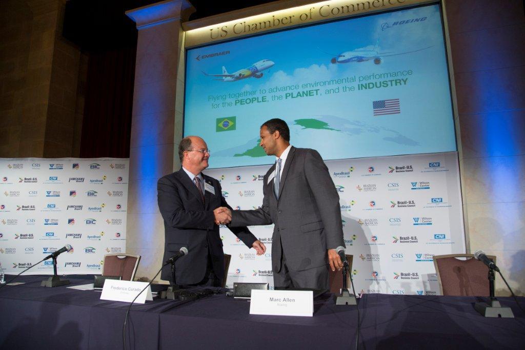 Pictured: Frederico Curado, president & CEO of Embraer and Marc Allen, president of Boeing International, at the Brazil-U.S. Business Summit in Washington, D.C.