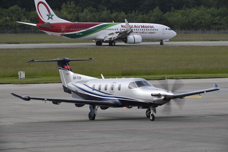 Pilatus Aircraft PC-12 arrives into Geneva to sit alongside the PC-24 on the static display.