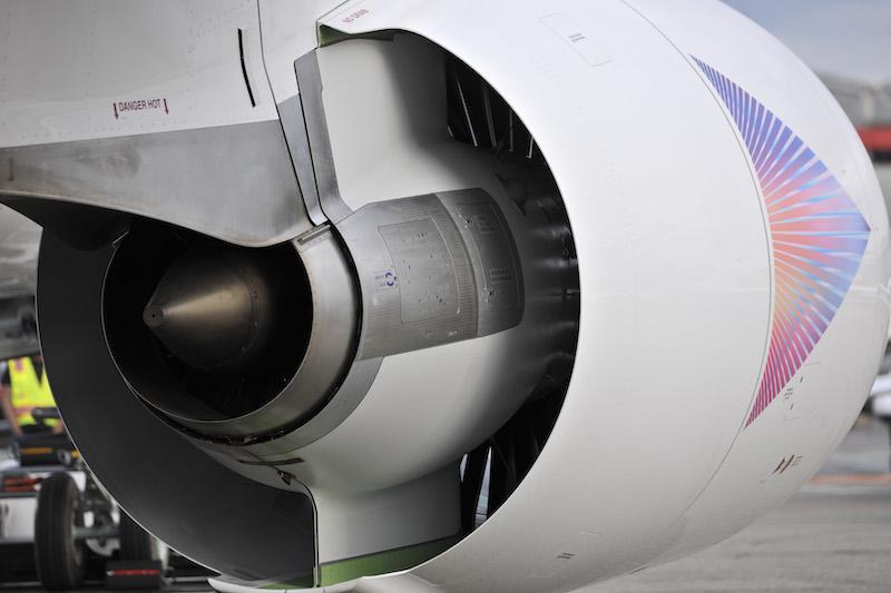 The gear-driven fan shown here is prominent on this Comlux-operated Airbus ACJ TwoTwenty - powered by Pratt & Whitney's PW1500G turbofan.