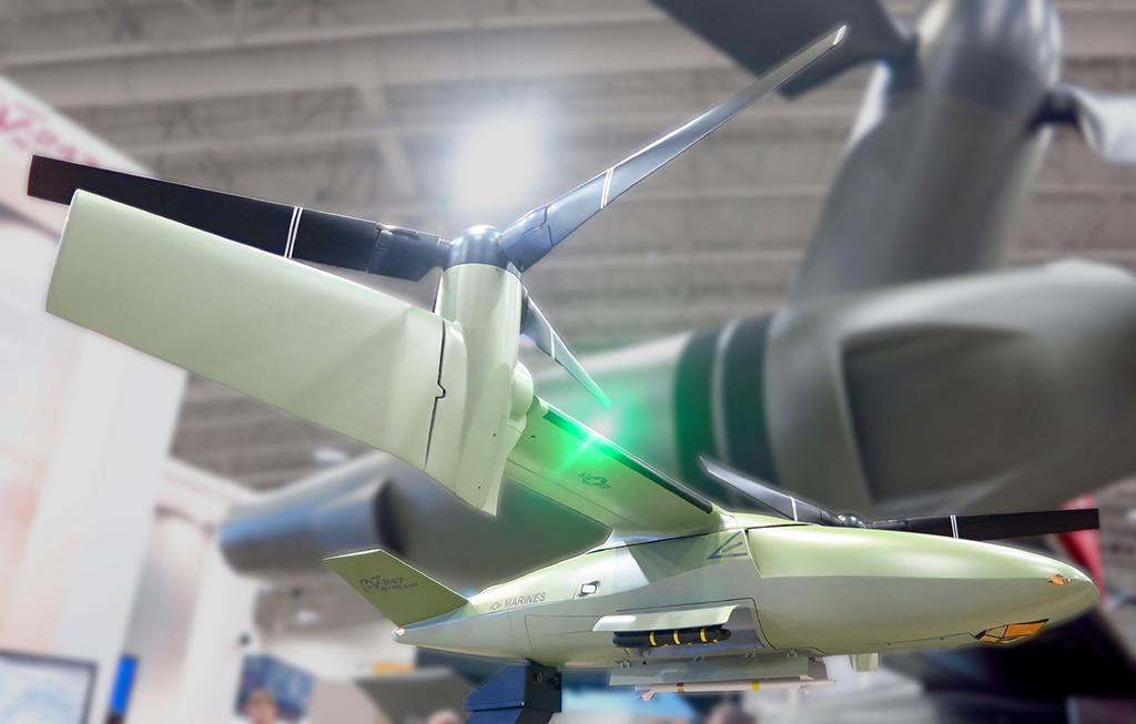 In addition to General Dynamics' Griffin technology demonstrator (pictured), also on display at AUSA are Bell Helicopter's newest offering for the U.S. Marine Corps’ “MUX” requirement for an unmanned, shipborne VTOL surveillance and attack platforms and the V-247 Vigilant fold-up tiltrotor, alongside its full-scale V-280 Valor mockup.