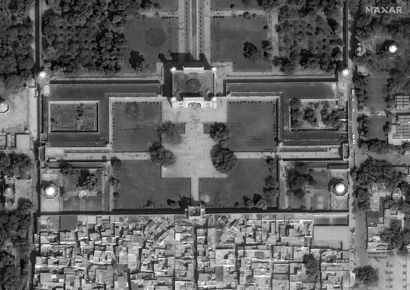 Compare images from the Great Gate of the Taj Mahal in Agra, India. The first, taken on Feb. 10, shows a rather limited crowd for this nation of more than 1.3 billion people.