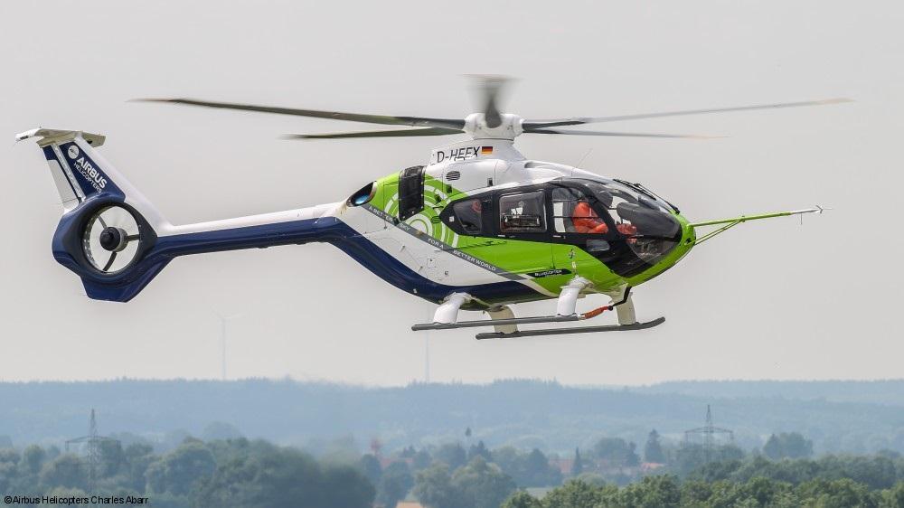 Airbus Helicopters formally unveiled its Bluecopter technology demonstrator on July 7. The modified H135 light twin is testing an “eco-mode” that shuts down one engine in cruise to boost fuel economy by 30%. Other changes are a five-blade main rotor with Blue Edge low-noise blades, quieter anti-torque fenestron and a T-tail with movable rudder.